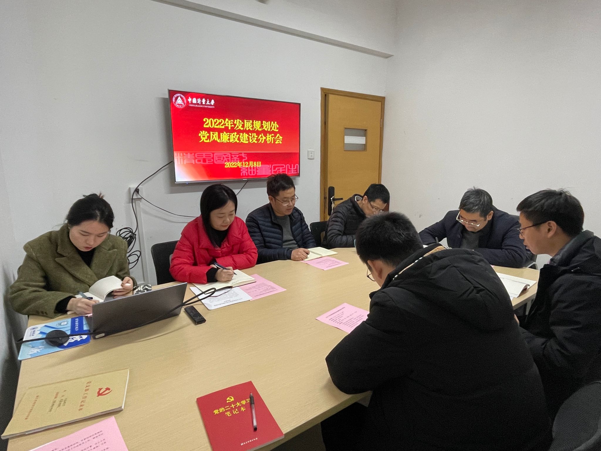 发展规划处党支部召开2022年党风廉政建设分析会 12月8日下午,发展规划处召开2022年度党风廉政建设分析会,校党委委员、副校长葛洪良到会指导,发展规划处全体成员参加会议,会议由发展规划处处长包福兵主持。包福兵对照省委巡视、校内离任审计等反馈意见、自查自纠整改清单及“四张责任清单”落实情况,代表发展规划处作党风廉政建设情况的报告。重点分析了部门工作职责、班子成员“一岗双责”的贯彻落实情况,并对工作过程中的廉政风险点进行了深刻的剖析,明确改进思路和改...