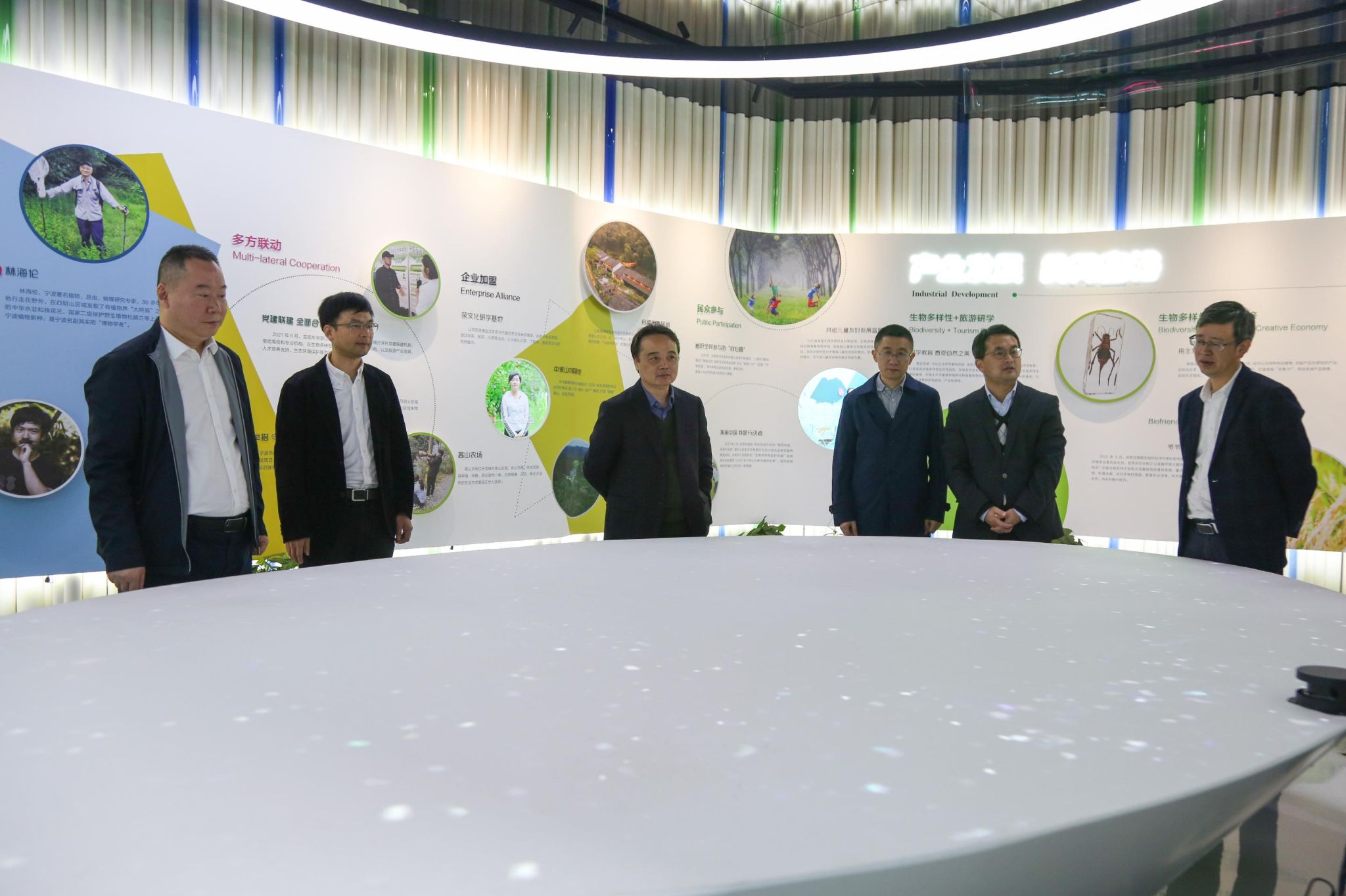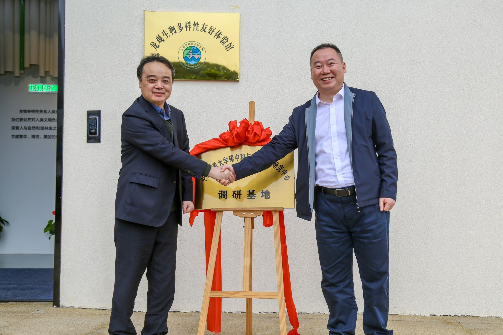 仪式前,徐江荣和黄健为中国计量大学碳中和与绿色发展研究中心调研基地揭牌,并参观了生物多样性友好体验馆和零碳共富观岭六村展示厅,考察了解海曙区生物多样性保护和零碳光伏乡镇建设工作。